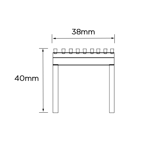 A 38mm wide UPVC channel is connected via downpipes at 200mm intervals to sockets in a 90mm or 100mm drain below. This allows the channel to be installed level while the drainpipe is given sufficient fall to be self-cleaning.